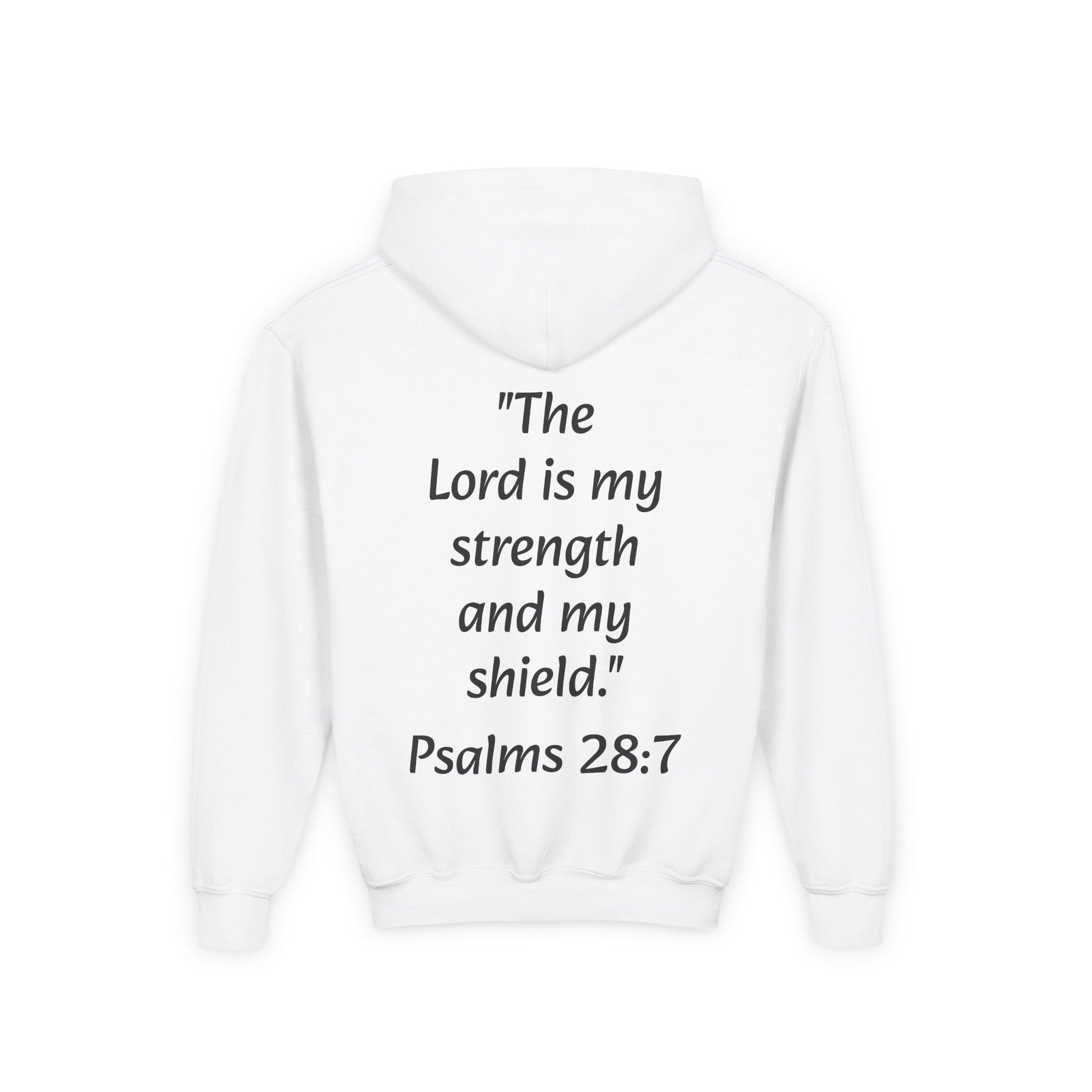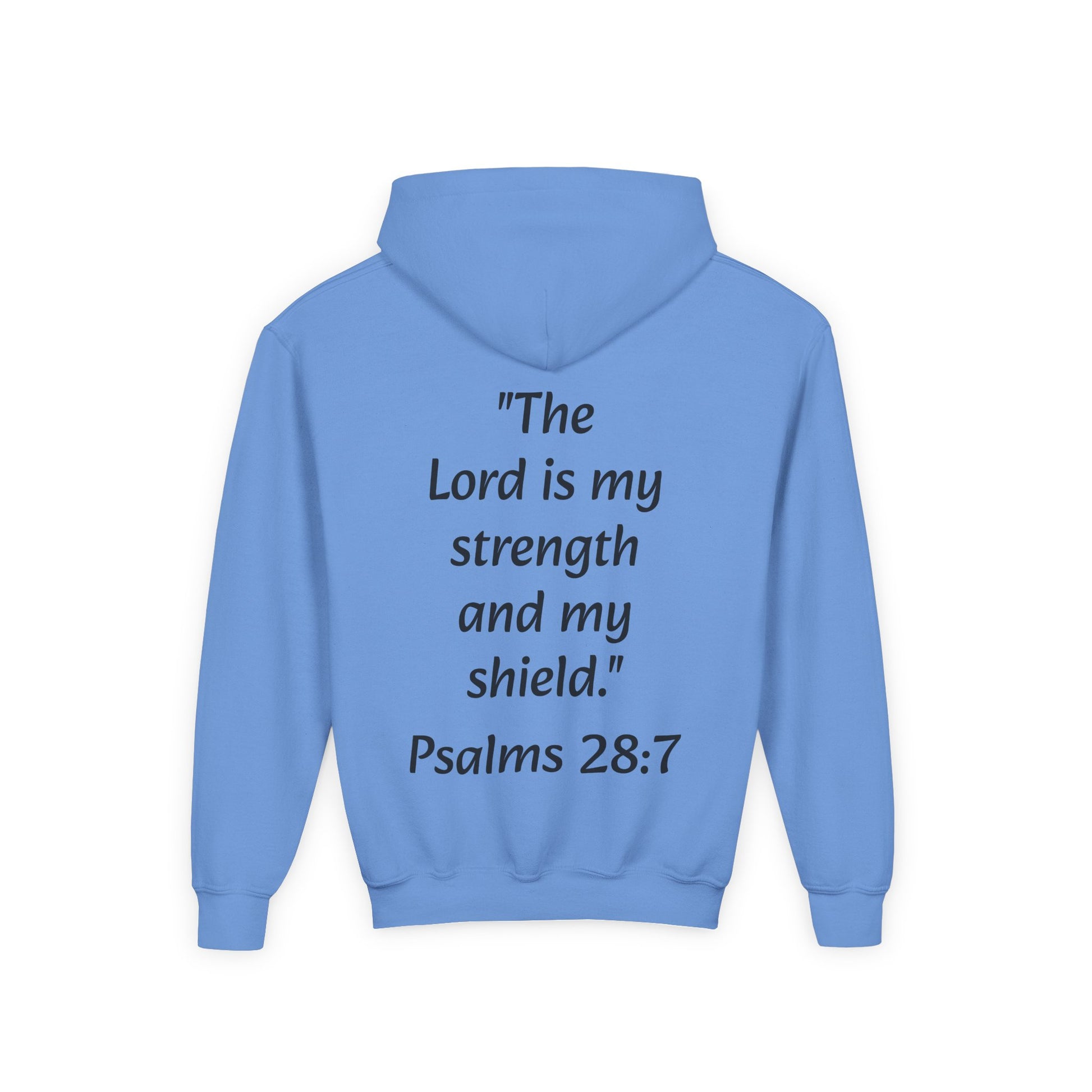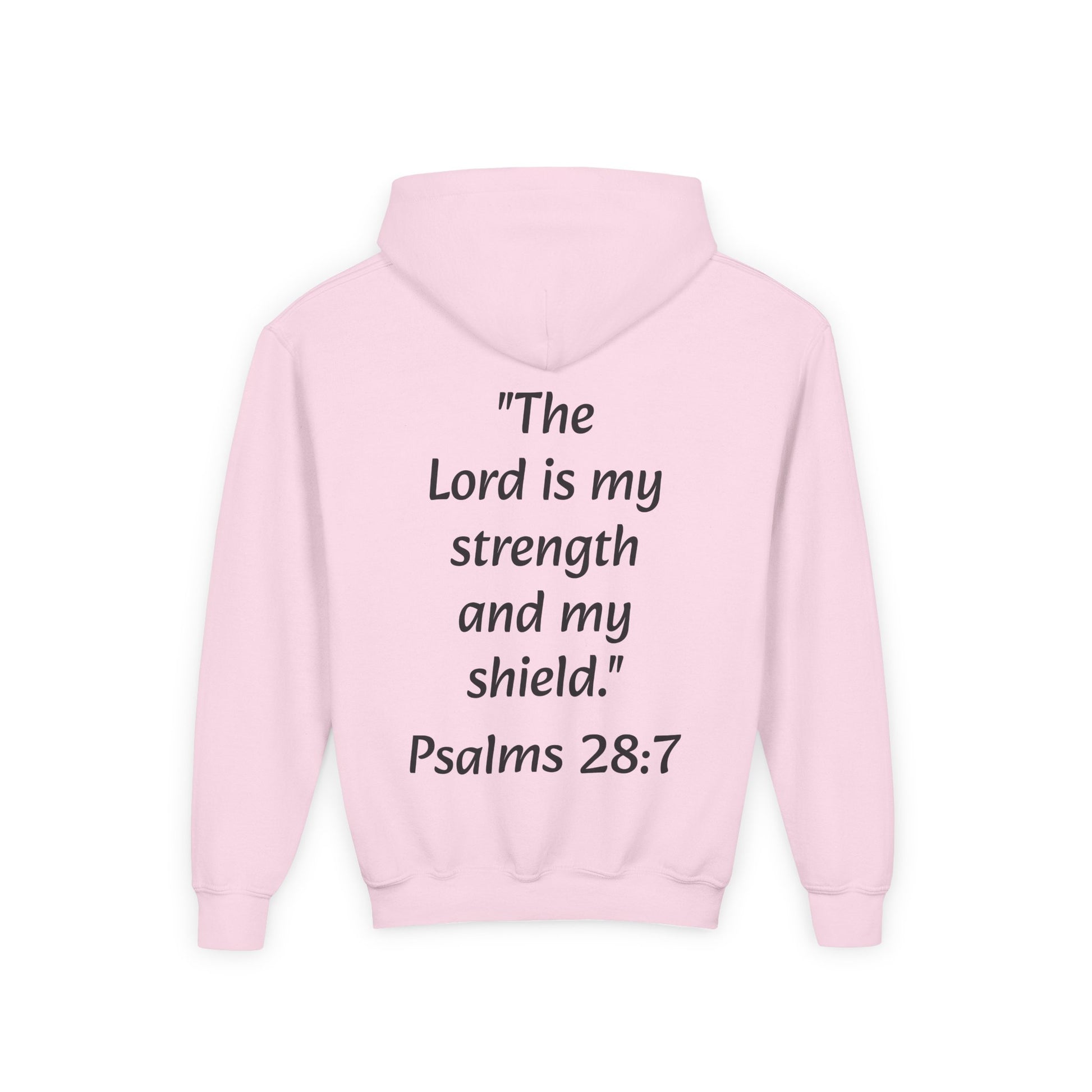 Introducing the ultimate Youth Heavy Blend Hooded Sweatshirt, designed for comfort and style. This cozy hoodie is perfect for chilly days, providing warmth with its spacious kangaroo pouch pocket. The fabric blends 50% cotton and 50% polyester, ensuring durability and a soft feel against the skin. With inspiring messages like "The Lord is my strength and my shield" printed on the back, this sweatshirt radiates positivity and can be a source of encouragement, making it a great choice for kids looking to express their faith. Ideal for youth groups, church events, or casual outings, this sweatshirt perfectly suits autumn gatherings, Easter celebrations, or everyday wear. Whether attending school or participating in community service, this hoodie will help your young ones stand out while staying cozy and stylish.